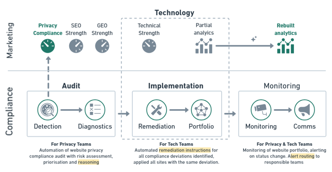 *Auditing, Implementation & Monitoring. Complete compliance lifecycle for your website portfolio.